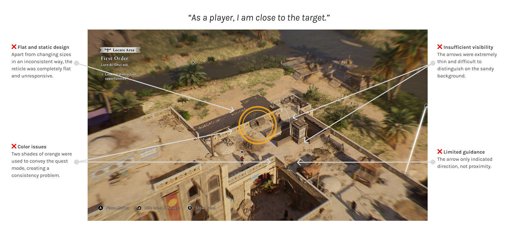 My assignment was to redesign the usability of the Eagle’s crosshair to meet actual gameplay objectives in Assassin’s Creed Mirage.
