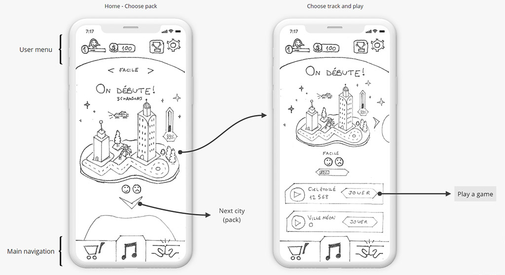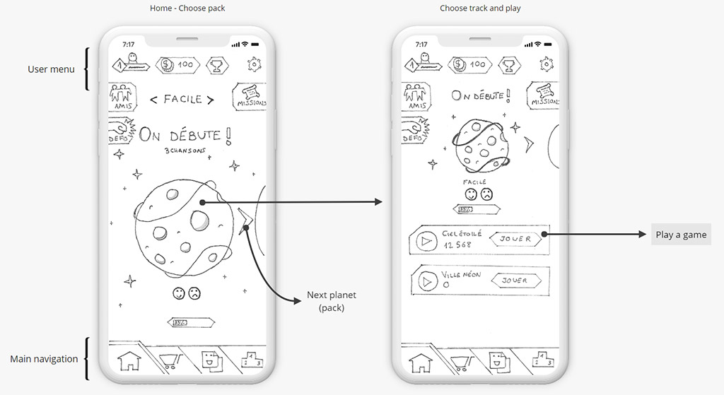 I did the user flow in collaboration with the game designer. This tool allows you to understand the path to follow in order to accomplish a task in the game app.