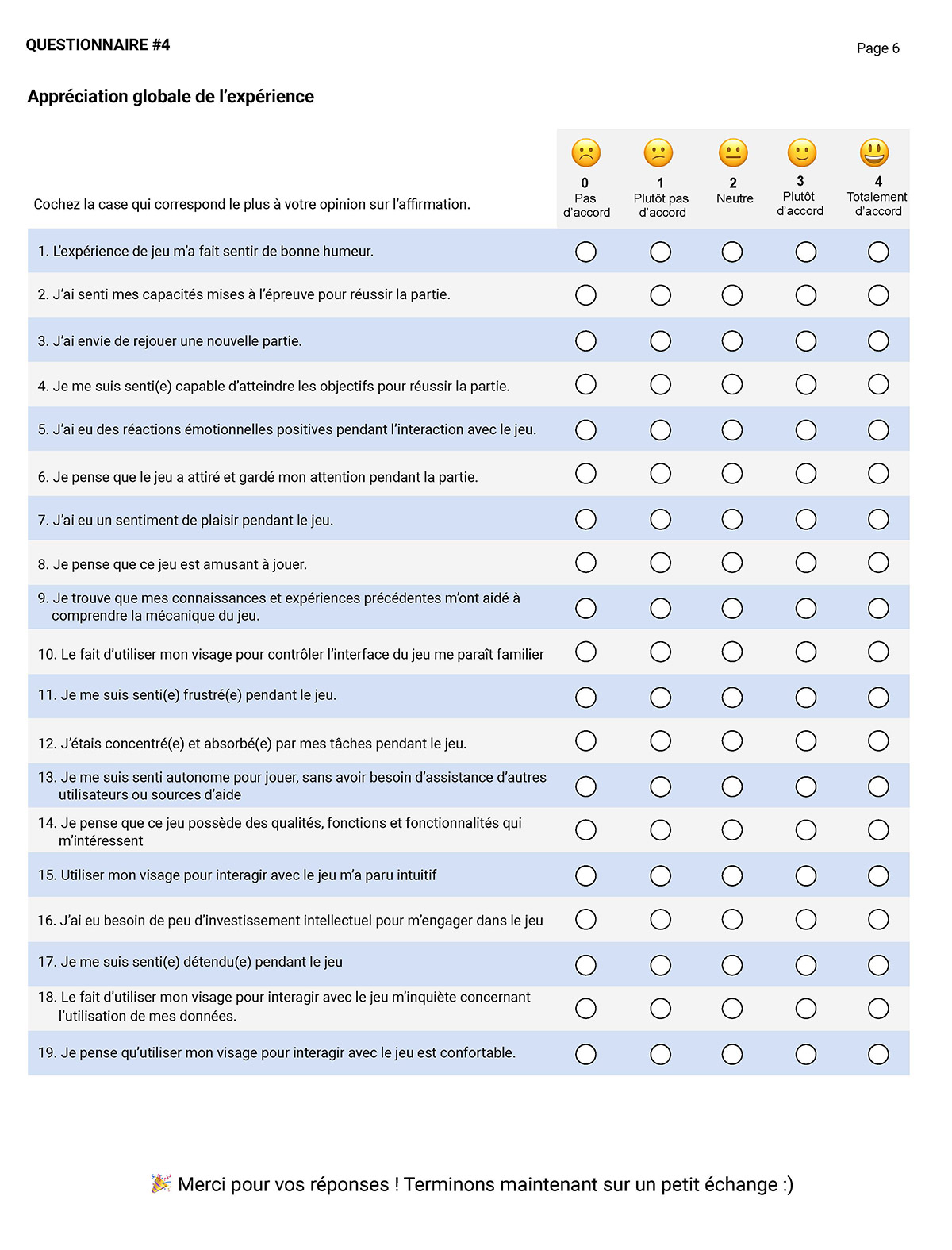 I did not find a questionnaire on acceptability that was scientifically validated and adapted to our “game” and technological innovation context.